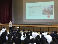 10月7日(火)、1学年を対象にした2人の卒業生による進路講演会を開催しました。お一人は、今春大学を卒業した社会人1年目の卒業生です。もうお一方は、社会人10年目で、社会で大活躍されている卒業生でした。どちらの卒業生も、高校時代に勉強や部活動などに目標を持って一生懸命頑張ることの大切さや、挑戦することの大切さを熱く語ってくださいました。生徒たちも熱心にメモを取って話を聴いていました。今回の講演会での学びが、生徒たちの進路実現に役立ってほしいと思います。