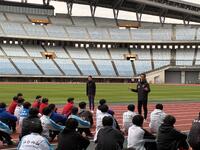 11月9日(日)、キューアンドエースタジアムみやぎで開催された「陸上競技クリニック」に参加しました。女子100m日本記録保持者の福島千里氏をはじめ、日本のトップアスリートの方々が講師として、参加した高校生に陸上競技の指導をしてくださいました。