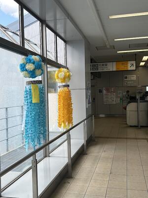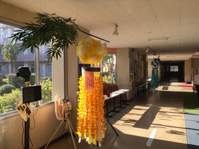 LHRの時間に生徒が折った鶴を七夕飾りにしました。