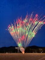 1日目は校内発表として、吹奏楽部の演奏と1,2年生のクラス発表が行われました。吹奏楽部は少数編成ながら、アラジンメドレーや宝島をパワフルに演奏し、会場を盛り上げてくれました。1,2年生のクラス発表では、クラスごとに工夫をこらしたダンスを披露してくれました。後夜祭では校庭で花火を打ち上げ、夏の終わりの夜空を彩りました。