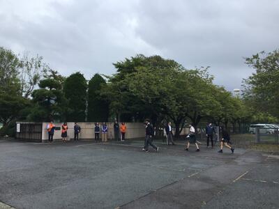 本校の生徒が、スプリントドリルやミニハードル、スタートダッシュなどのお手本を見せるたびに、小学生から歓声が上がりました。本校の生徒たちは、日頃聞くことのできない歓声に背中を押され、いつも以上に練習に熱が入りました。小学生にとっても、本校の生徒たちにとっても、学び得るものがたくさんあったと思います。