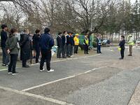4月15日朝、宮城地区自転車マナーアップ推進協議会主催の、春の「宮城地区防犯・交通安全街頭キャンペーン」が開催され、本校からも生徒会を中心に参加し、本校校門前で自転車マナーアップ運動を行いました。