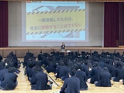 4月24日(金)6校時に全校生徒を対象に、本校教育振興会主催事業の「情報モラル研修会」を実施しました。