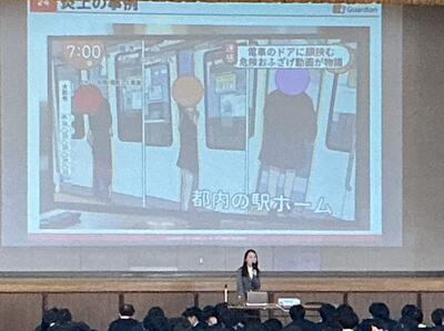 インターネットを安全・安心に利用するための講義を行っていただきました。SNS上のトラブルは誰にでも起こり得ることや顔を出さずに投稿できることから発言内容が過激になったり、軽い気持ちでついつい反応を示したことが思わぬ犯罪につながる可能性があることなど、具体的な事例を交えた内容となりました。